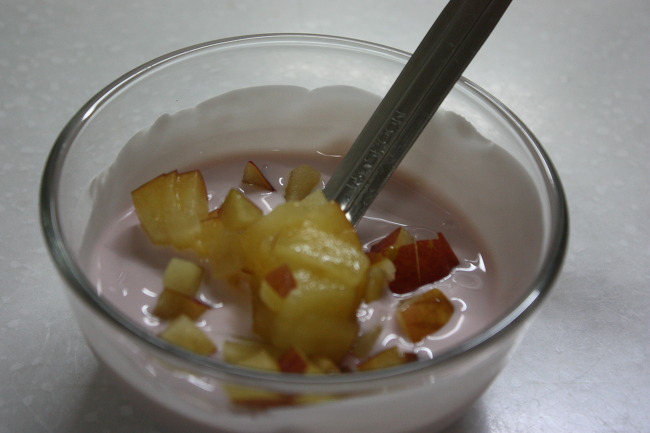 플레인요구르트 오미자청 잘게 자른 자두 넣고....냉장고에 넣어 두세요.