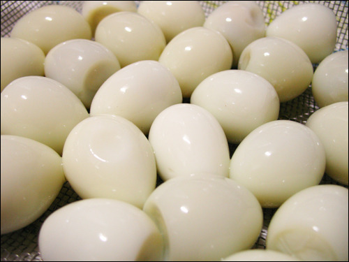 메추리 알은 15분 정도 삶아서 껍질을 벗겨 준비해 주세요.