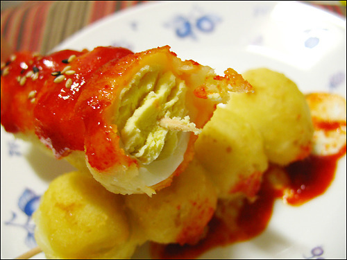 학교 앞 분식 포장마차에서 떡꼬치와 더불어 젤 좋아했던게 바로 이 메추리알 꼬치에요.