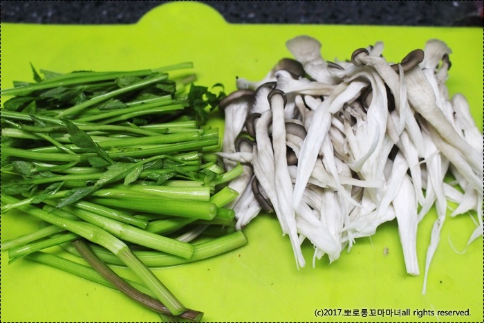 미나리와 버섯을 넣고 뚜껑 닫고 2분정도 좀더 끓이면 완성입니다.