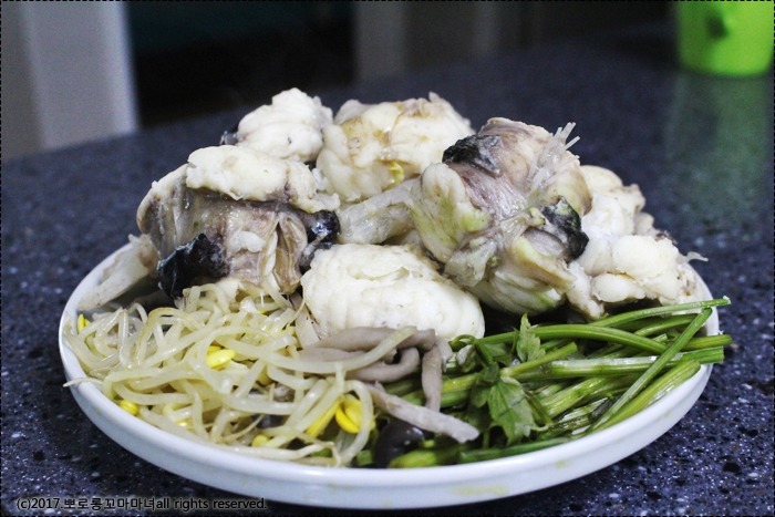 오늘 소개할 것은 아귀수육이에요. 아구수육이라고도 하는데 아구는 지방 방언이라는 말도 있더라구요^^;; 자주가는 농수산물 카페에서 2키로 산건데 완전 실하고 좋더라구요.