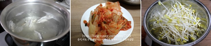 콩나물, 김치, 멸치다시마육수, 김치국물, 파
