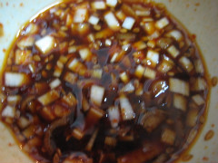 간장 3큰술, 물 2큰술, 고추가루 2큰술, 다진 파 2큰술,