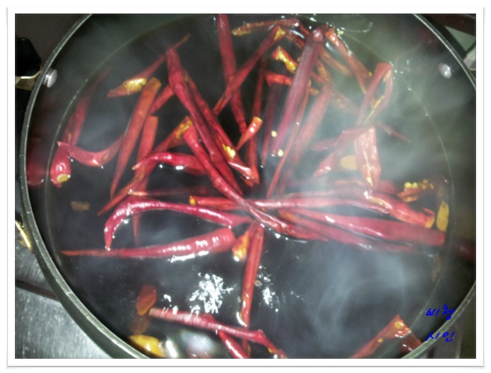 감초와 마른고추를 건져낸후