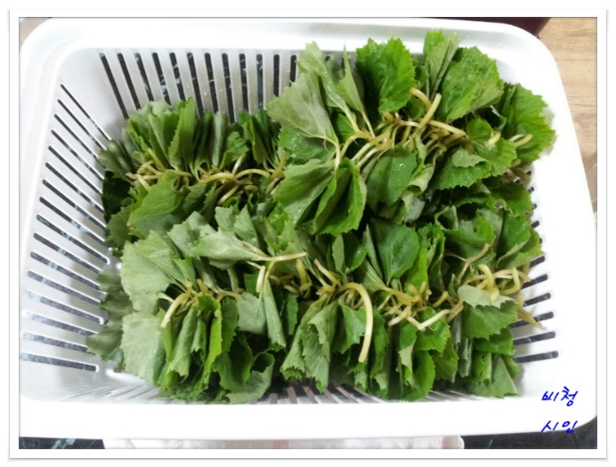 흐르는 물에 씻고 소쿠리에 깨잎처럼 차곡 차곡 세워두면