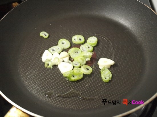 팬에 기름을 두른 후 마늘 대파를 먼저 볶다가