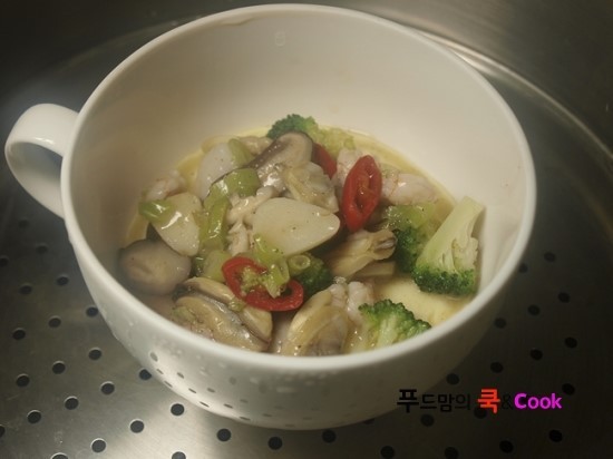 그릇에 담아 찜기에 올려 10분 정도 쪄 주시면 됩니다.
