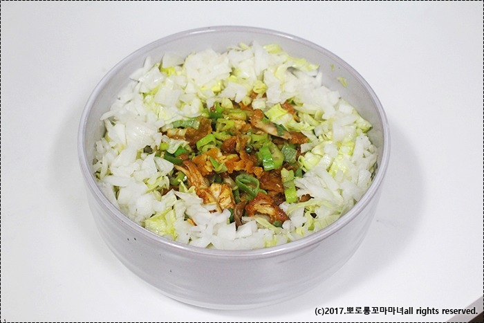 치킨무도 얇고 작게 다지듯 잘라주세요.