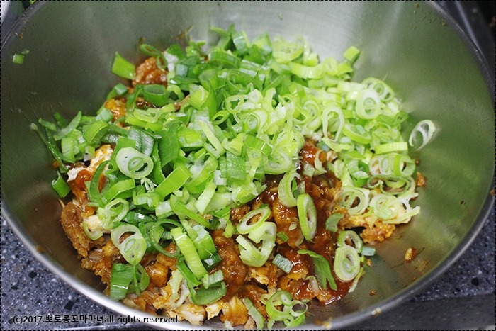 그래서 요렇게 대파와 같이 버무린 뒤에
