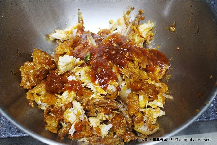 그리고 남은 치킨 소스도 싹싹 긁어서 볼에 넣어주세요.
