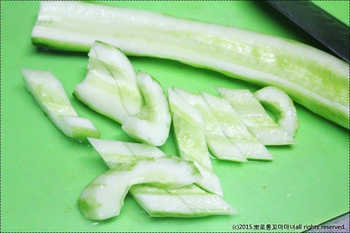 오이의 껍질을 필러로 벗긴 뒤에..