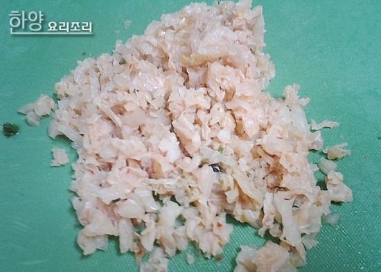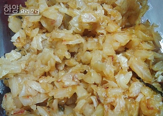 물기를 꼭 짠 후 잘게 다져줍니다.