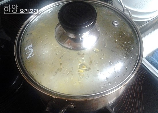 센불에서 뚜껑을 덮고 끓여 4분~5분 정도 익혀줍니다.