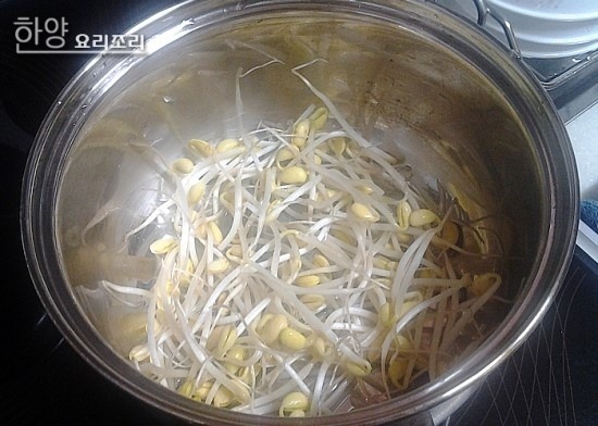 깨끗하게 씻은 콩나물은 냄비에 펼쳐 넣고