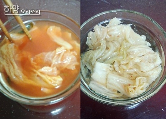 김치를 물로 헹군 후 잠시 물에 담궈 줍니다.