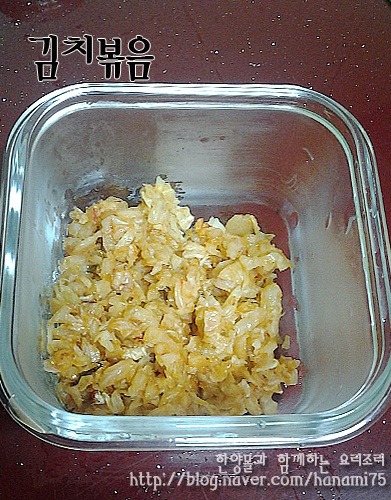 다진 김치를 넣고 휘리릭~~~볶아 줍니다.