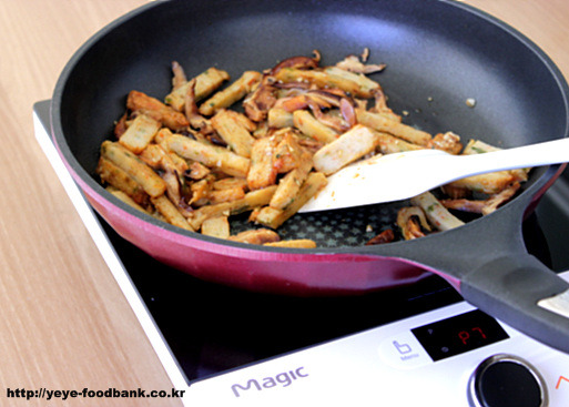 어묵부터 넣고 볶아주다가..