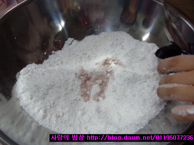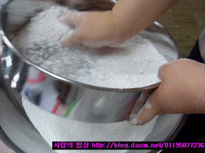 1. 멥살가루 6컵은 콩삶은 물로 물주기를 한다.