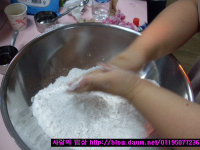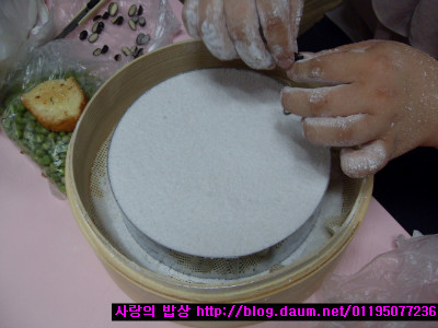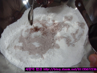 다시 고운 체에 쳐셔 수분과 공기의 상태를 균일하게 한 후