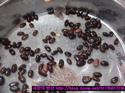 3.묵은 콩은 2시간 이상 불려 설탕물에 조리거나 삶은후 소금을 뿌려 놓는다.