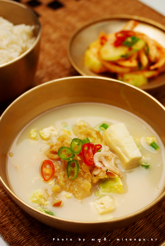 뽀얗게 끓여 먹으면 보기도 좋고, 맛도 더 좋습니다.