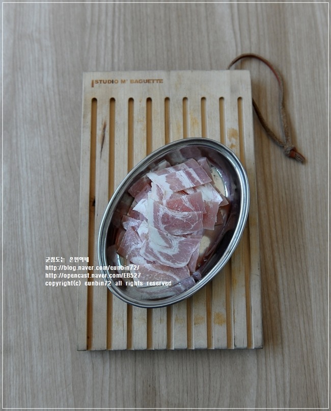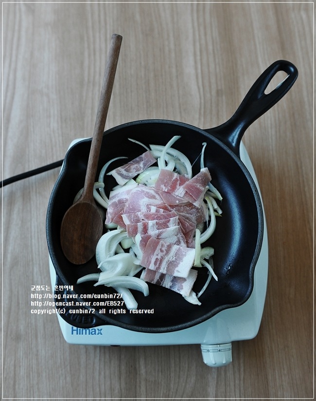 여기에 베이컨을 넣고 양파와함께 볶아주세요