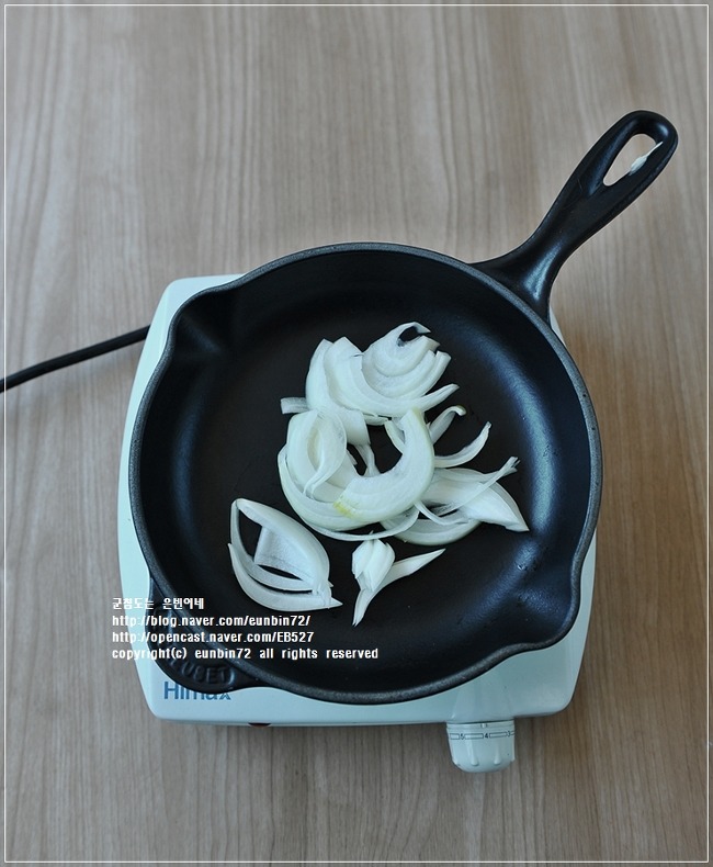 팬에 오일을 아주 약간만 두르고 양파를 넣어볶아주세요