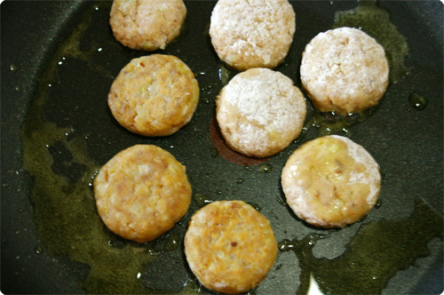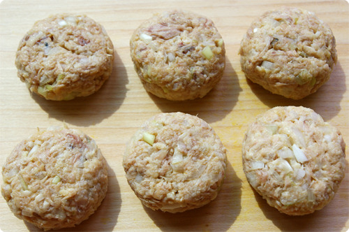 지름 3~3.5cm원으로 참치 동그랑땡을 만들어 줍니다.