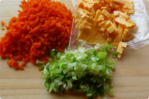 당근, 파, 슬라이스치즈는 잘게 썰어 줍니다.