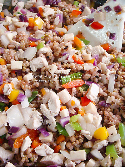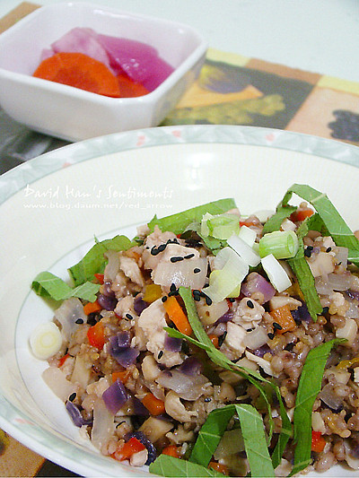 흰쌀밥이 보기엔 좋지만 컨셉이 웰빙이니만큼 잡곡밥을 사용합니다.
