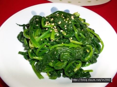 시금치는 뿌리잘라버리고 흙을 깨끗이 씻어내고, 노란잎' 까맣게 시든잎 떼내고 끓는물에 소금넣고 투하해