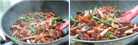 마른오징어를 넣고 졸이다가 준비한 나머지 재료를 모두 넣고