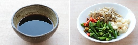 마른오징어 3마리, 조림고추 70g, 통마늘 7~8통, 우엉(손질한것) 100g