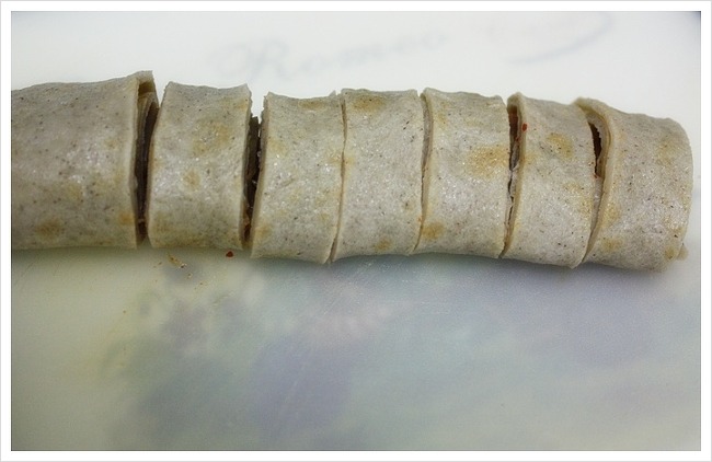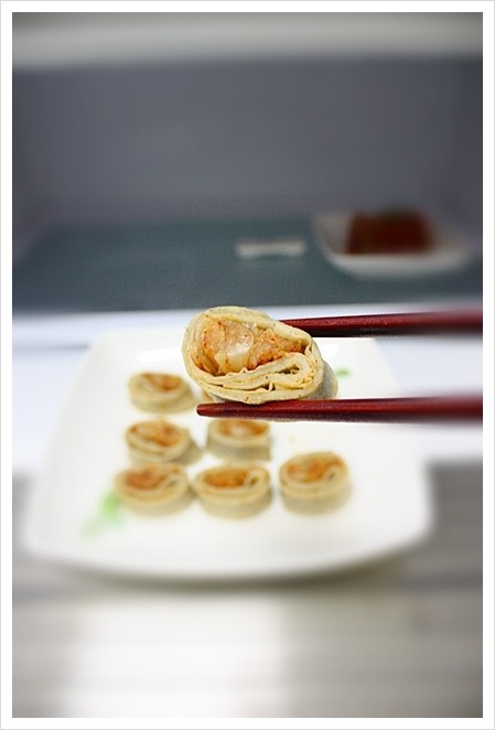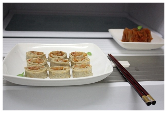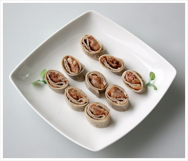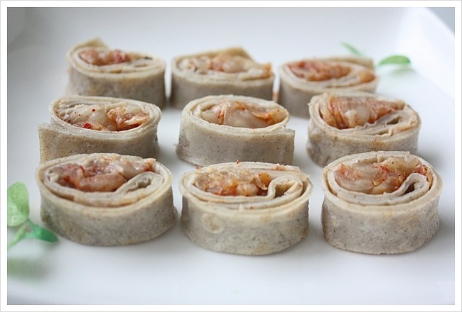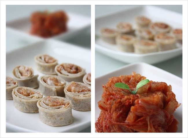 돌돌말린 메밀전병안에 김치가 쏙~들어가서