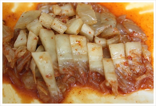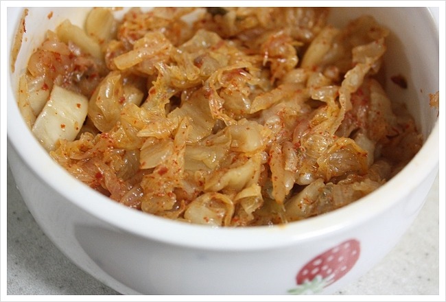 그냥 꼭 짠 김치를 사용해도 되고 설탕이나 참기름을 조금 넣어주셔도 좋답니다.