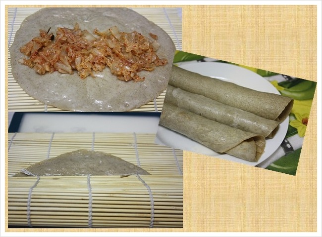 김밥 싸실때 처럼 부친 메밀전병위에