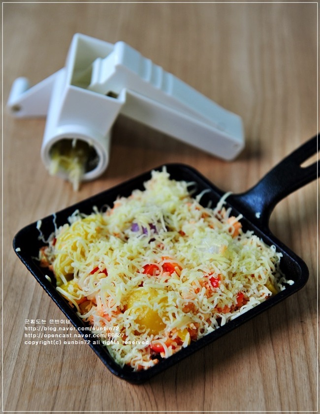 모짜렐라치즈와 체다치즈를 갈아서 위에 얹어주세요