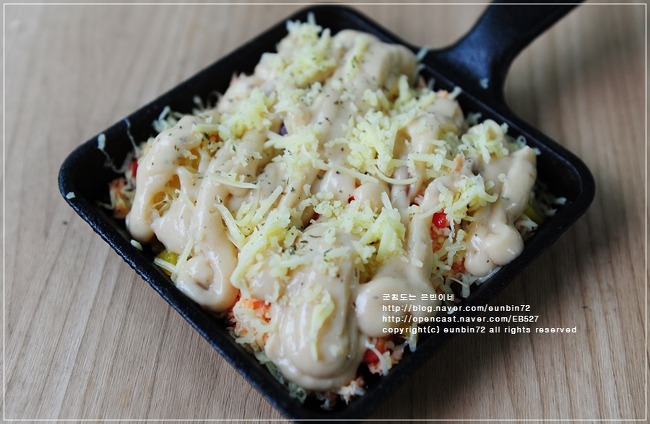 모짜렐라치즈, 체다치즈 적당량, ,까르보나라 소스, 파슬리약간