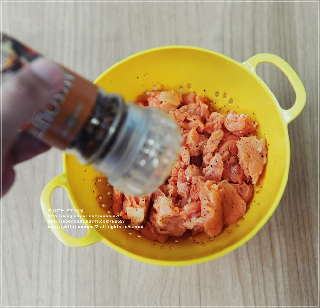 동원 연어캔 2개,후춧가루 약간, 레몬즙약간,