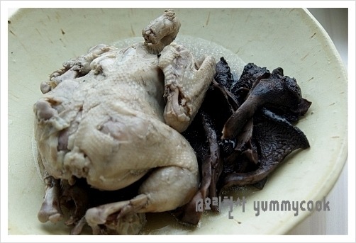푹 익은 영계는 살을 발라내어