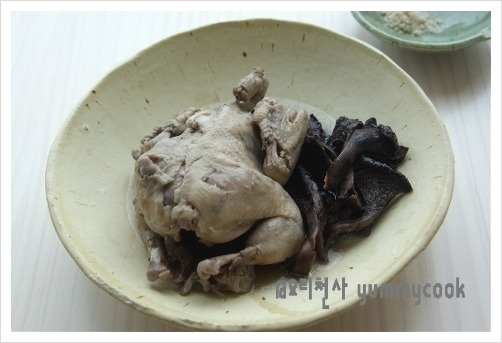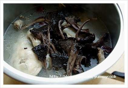 다시 손질한 능이버섯을 넣고 닭이 연해 질 때까지 끓여준다