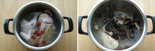 영계가 잠길정도의 물에 황기, 마늘, 대추 넣고 30분정도 끓여준다