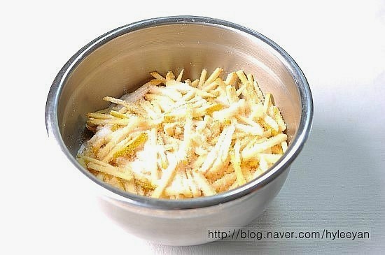 큰양푼이나 볼에 채썬모과를 넣고,