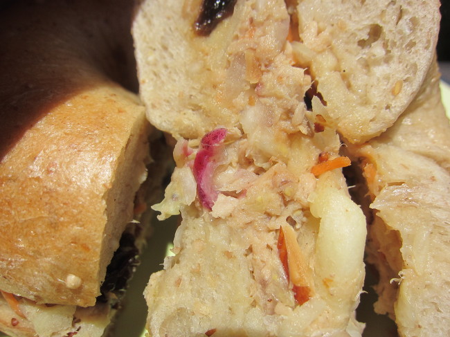 물기가 좀 있는 Filling이라서 베이글처럼 밀도가 있는 빵과 어울려요.빵이 쉽게 눅눅해지지