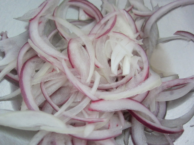 양파는 되도록 가늘게 채썰어,레몬 반개즙,설탕에 다른 재료를 써는 동안 잠시 재워 두세요.