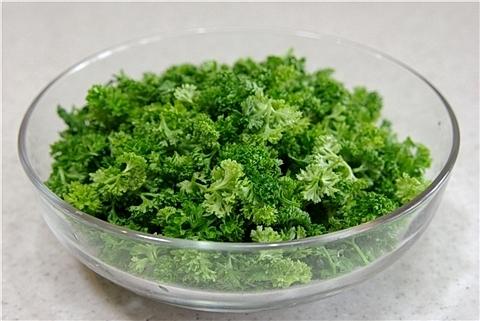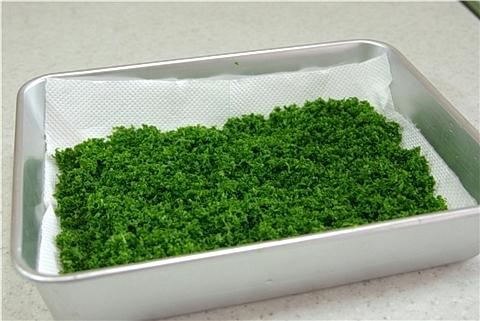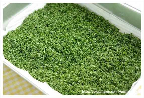 다시 넓은 밧트나 쟁반에 키친 타월을 깔고 물기 뺀 다진 파슬리를 골고루 편다