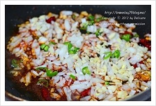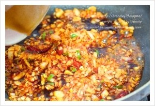 고추기름이 완성이 되면 불을 켜고 다진 마늘과 양파, 고추를 넣고 살짝 볶다가