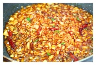 그러면 사진처럼 뽀글거리며 고추기름이 만들어져요..