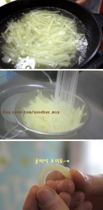어떤 사람은 아삭한 감자채를 좋아하고 또 어떤 사람은 완전히 익혀서 먹는 사람도 있고...