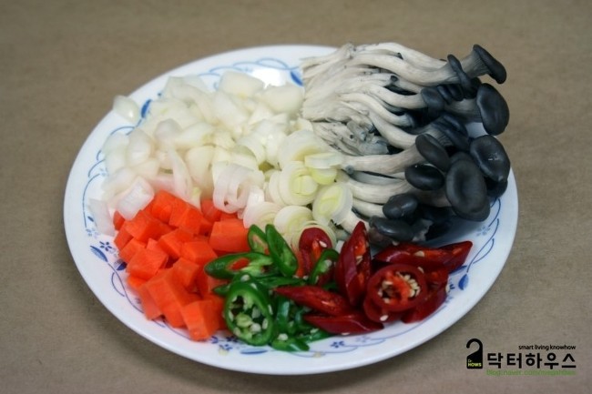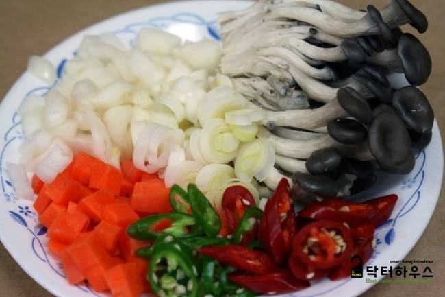 그리고 주 재료인 계란과 파, 당근, 고추, 버섯 등입니다.